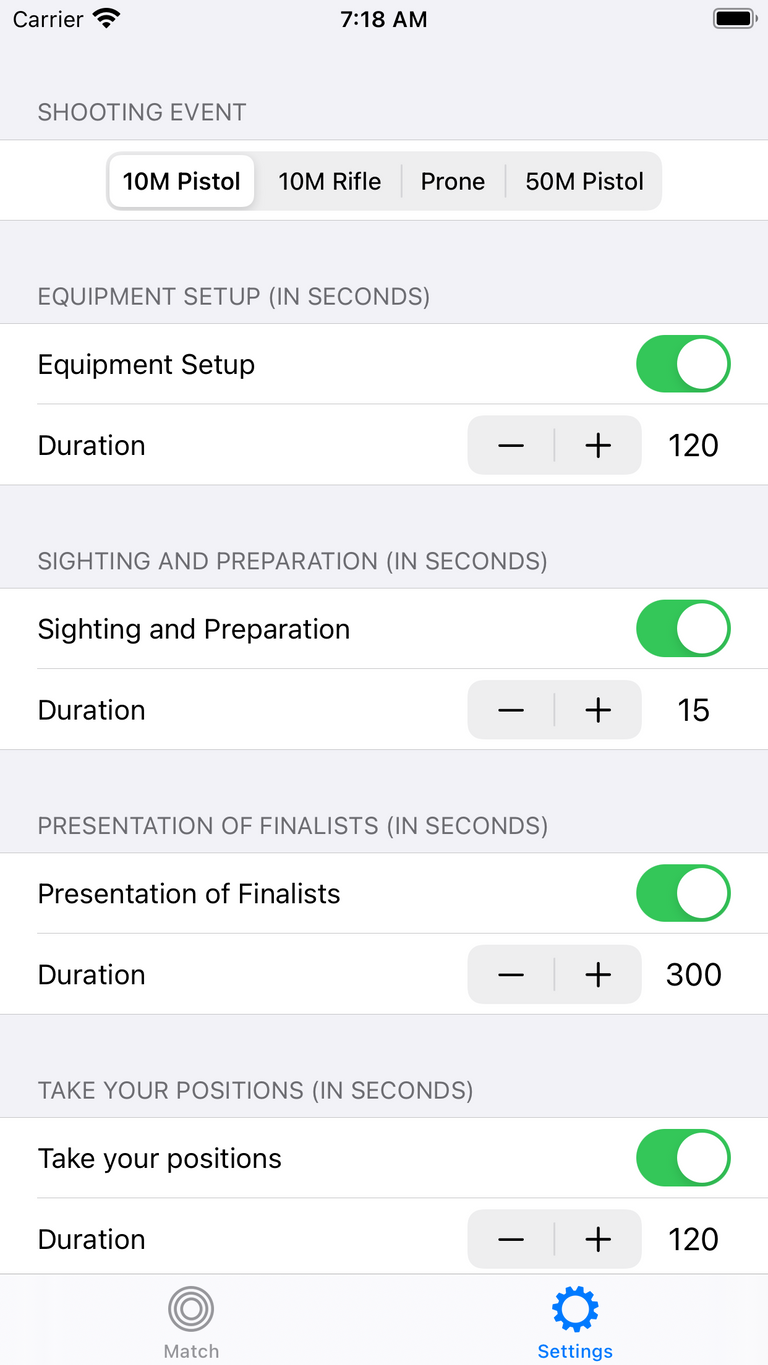 It enables you to train specifically for ISSF / Olympic 10 and 50 Metre Finals, recreating the exact format including all of the necessary Audio prompts.